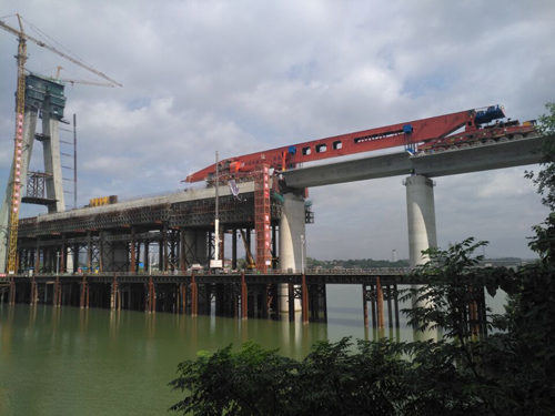 發(fā)布日期:2017-08-242017年8月24日,由通聯(lián)科技設(shè)計制造的900噸運架一體式架橋機成功完成昌贛高鐵12標(biāo)段262孔箱梁的架設(shè)工作,昌贛高鐵順利合攏。