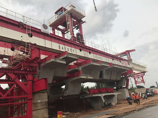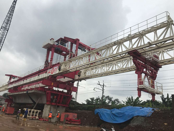 600t Span by Span Launching Gantry finished the first span erection in Jakarta of Indonesia.